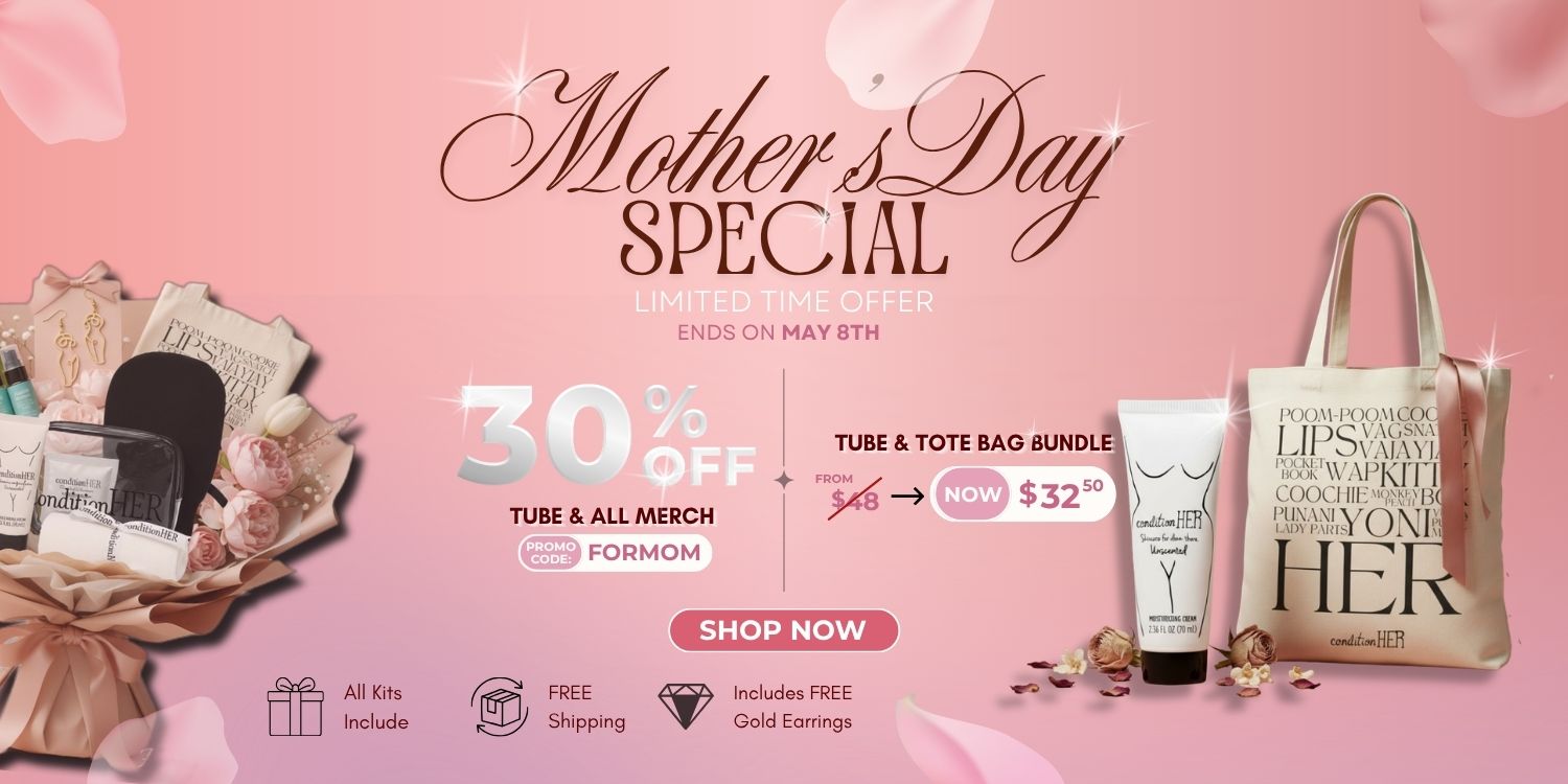 conditionHER was developed to help balance pH, reduce ingrown hair + discoloration, and soothe chafing irritation.