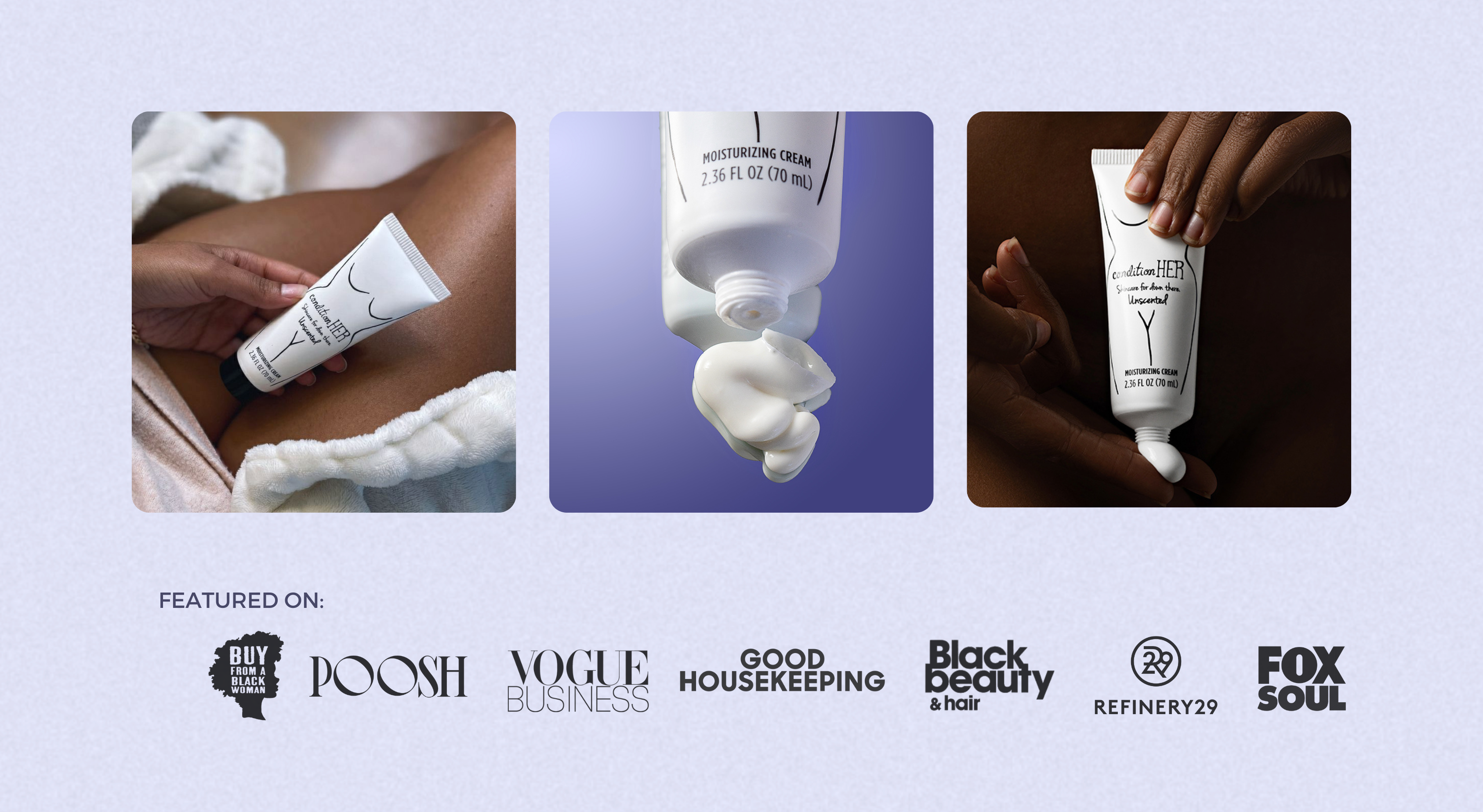 conditionHER was developed to help balance pH, reduce ingrown hair + discoloration, and soothe chafing irritation.